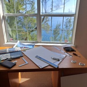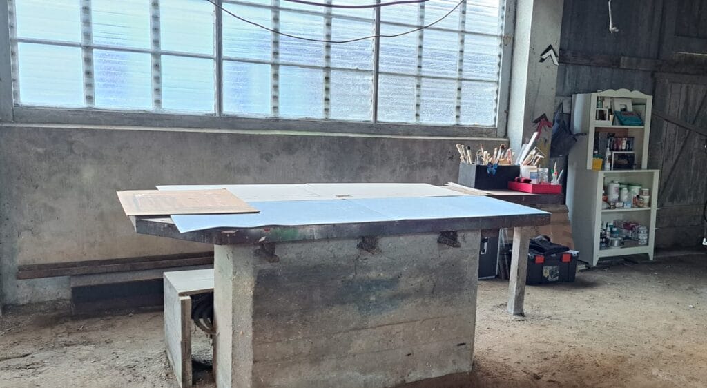 un atelier dédié aux travaux préparatoires de découpe des cartons, papiers, assemblage du paquet et à la conservation de vos oeuvres.